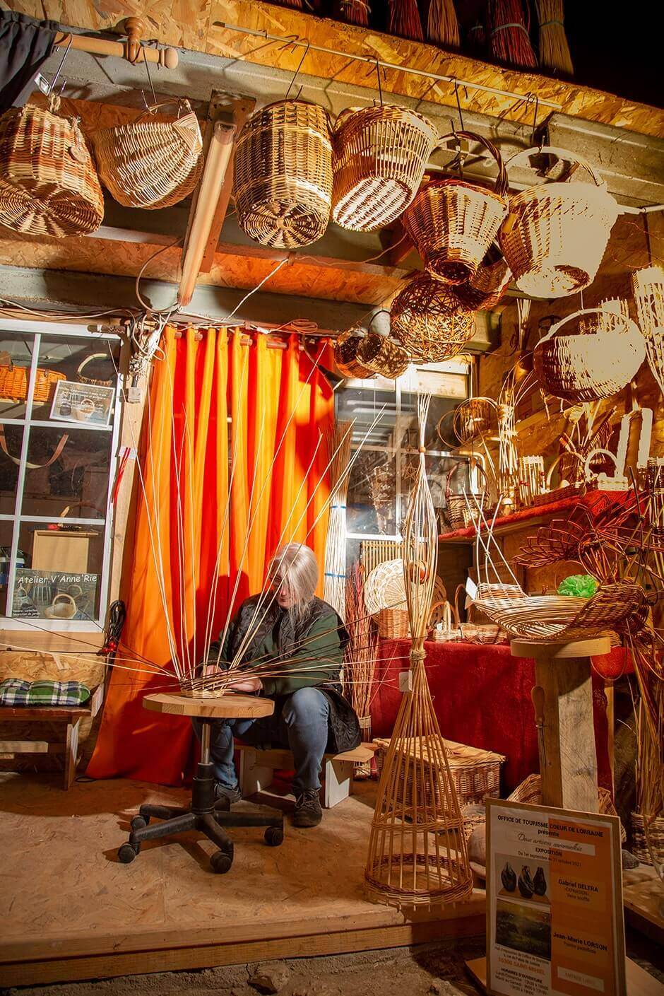 C’est après avoir fait un panier chez Francis VARENNE que je me suis découvert cette passion pour la vannerie. Je décide de me former fin 2019 à l’Ecole National d’Osiériculture et de la Vannerie à Fayl Billot , depuis je vis pleinement ma passion en créant objets traditionnels (paniers, corbeilles…..) mais aussi artistiques, décoratifs (fleurs, boules entrelacs…..) et je partage aussi mon savoir faire en proposant des ateliers tout au long de l’année.