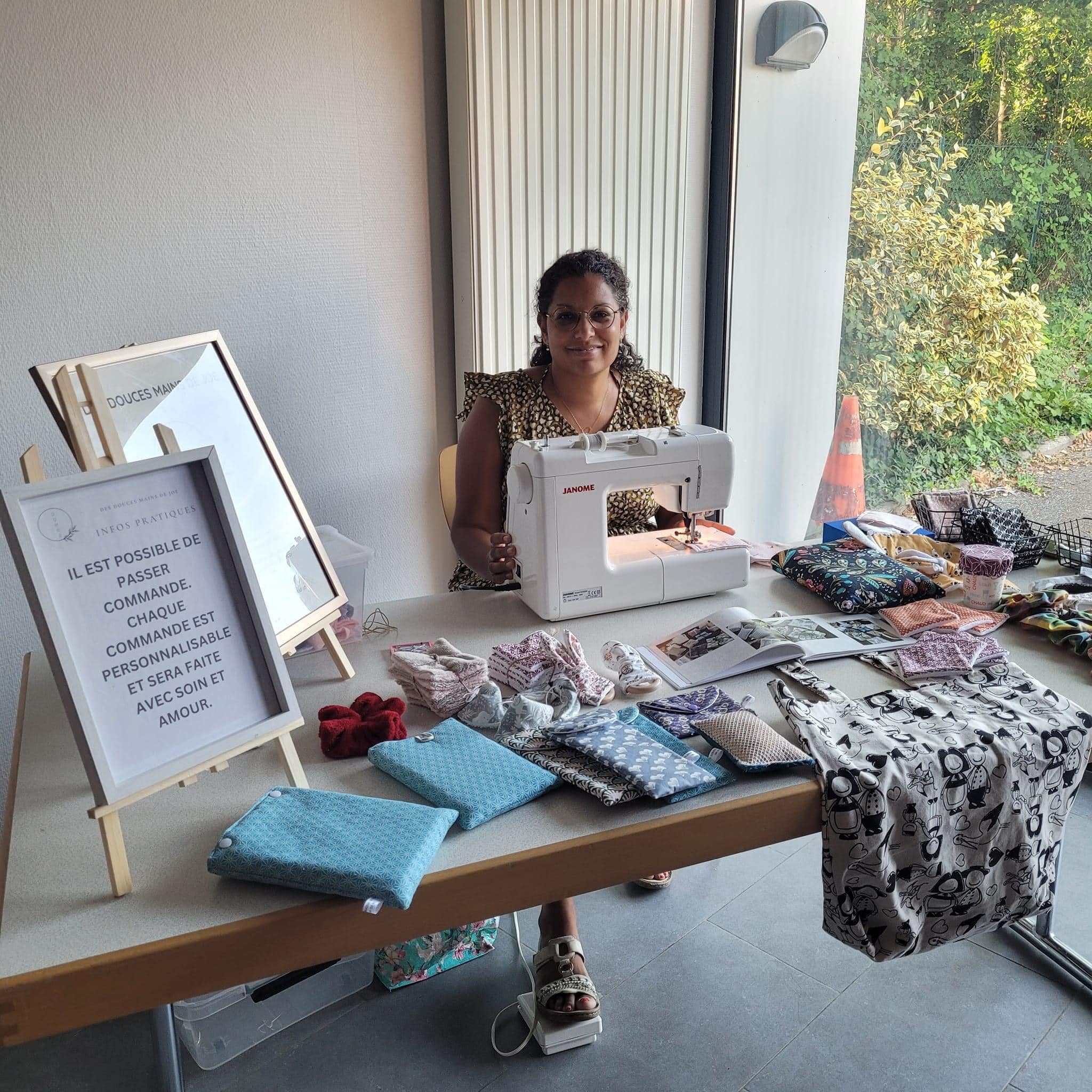 Joëlle Gogniat, c’est avant tout une passionnée de couture en plus d’être une artiste prolifique. Dans son atelier de couture vous pourrez découvrir une multitude d’accessoires tous différents et faits à la main. Son activité s’inscrit également dans une dynamique éco-responsable, le zéro déchets est son crédo.