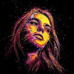 Sa peinture se dévoile comme une quête constante du mouvement, caractérisée par un travail gestuel affirmé. En employant la technique du Dripping, ses visages prennent vie en versant et projetant la peinture sur la toile sans qu’il n’y ait de contact physique, laissant ainsi place à l’imprévu et à la liberté artistique. Cette approche particulière se révèle particulièrement sensible aux déplacements et aux mouvements, naviguant habilement à la frontière de l’imprévisible.