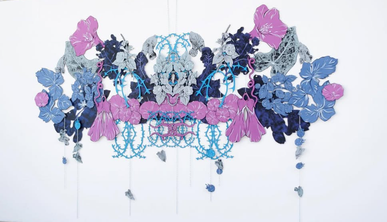 Proche du répertoire des arts-décoratifs et fascinée par les motifs et les matières, éprouvés comme stimulation et excitation rétinienne mon travail est une célébration du vivant : construit par l’observation du réel et des ressources encyclopédiques, c’est en questionnant les formes animales, végétales et humaines que nait de l’hybridation du réel, des formes intranquilles et amusées.