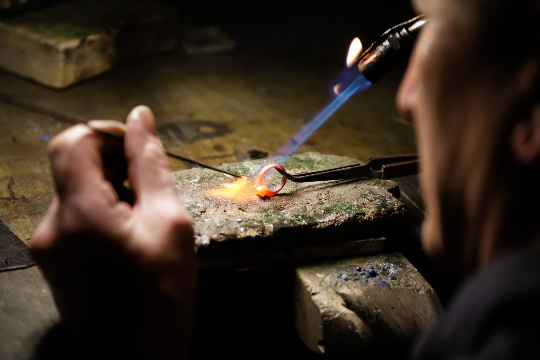 Lieu de tous les possibles, l’atelier, situé à l’arrière même de la boutique principale du créateur. Là, se décline un art artisanal hérité des temps anciens, rencontre entre subtils désirs et belle maîtrise. De celle qui, de la technique dite de la fonte à cire perdue au sertissage, font que le bijou, bien plus qu’un simple présent, est un témoignage des années passées et à venir.