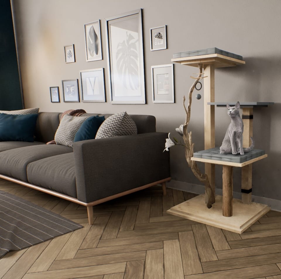 Katzimini crée et construit des arbres à chats solides et agréables, aux designs originaux qui s’intègrent au style de votre aménagement d’intérieur.