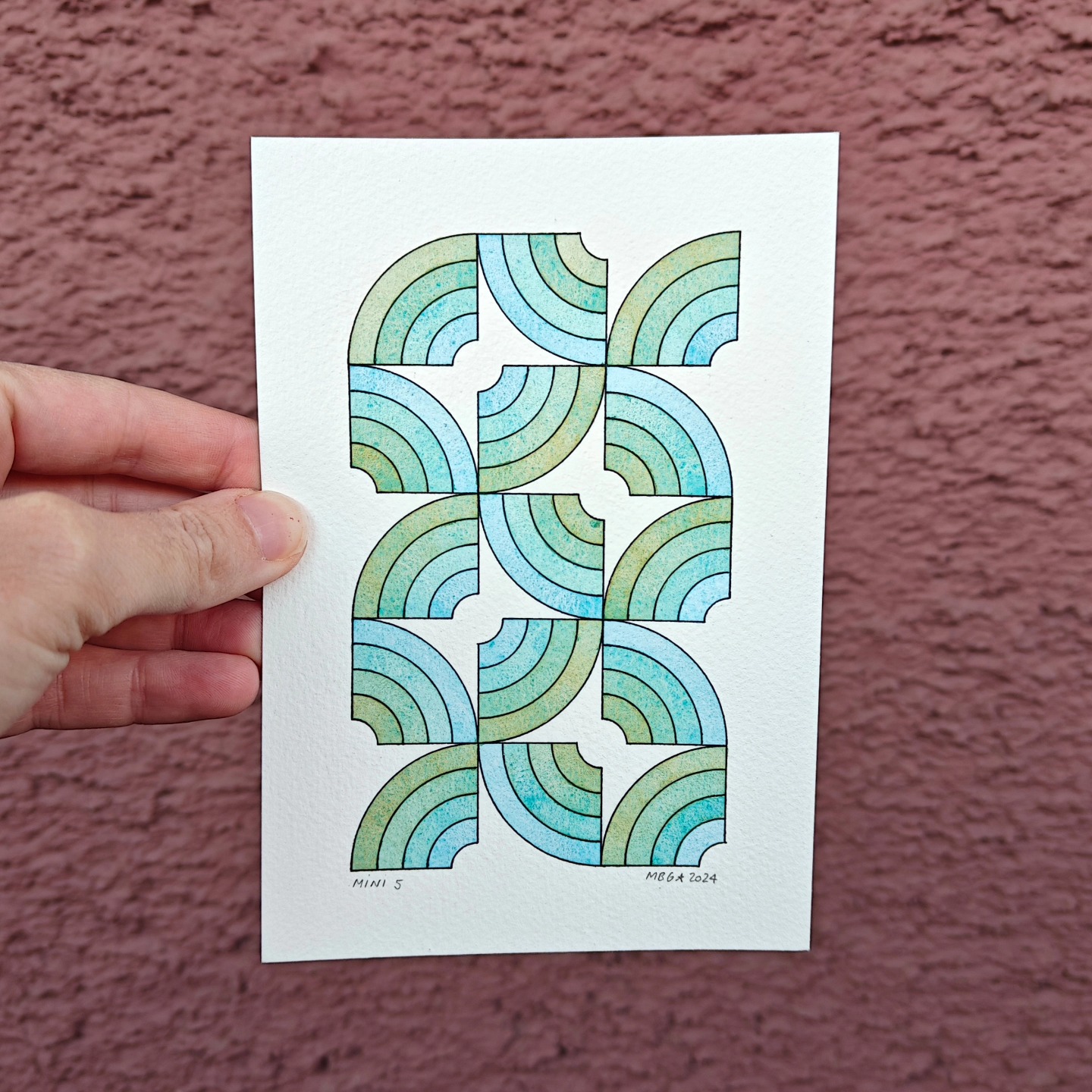 Lors de voyages au Maroc, en Andalousie et au Portugal, je suis tombée amoureuse des carreaux mauresques. Ils m’ont inspirée à dessiner mes propres motifs et à apprendre l’aquarelle pour les peindre.