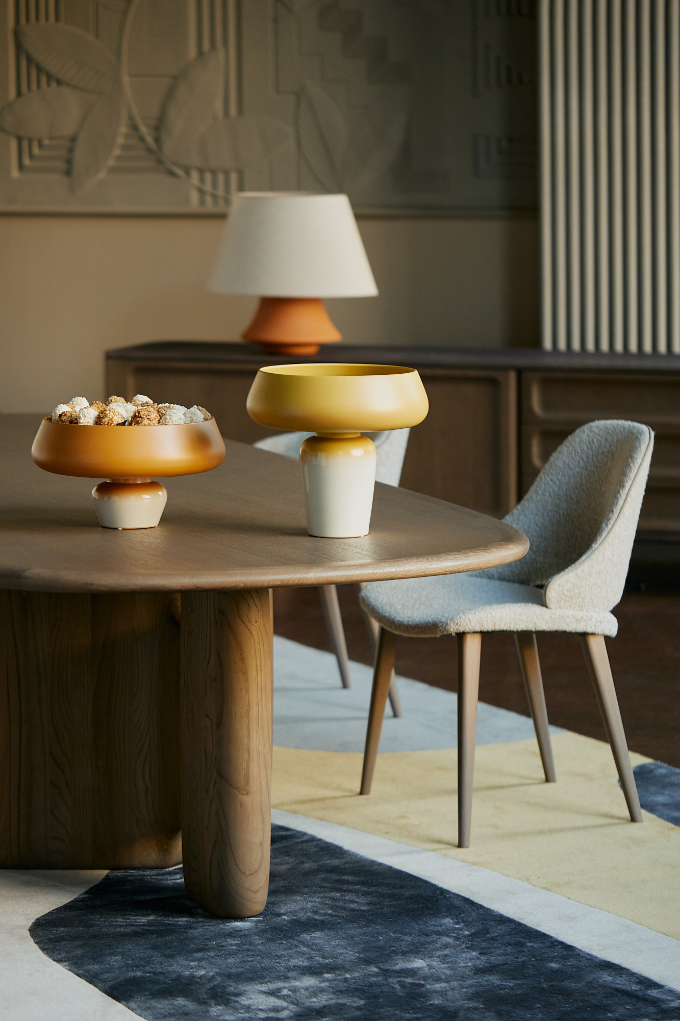 « La collection Bombom puise son inspiration dans les œuvres murales que je réalise : des créations au crochet qui sortent de leurs cadres, à la manière de paysages qui voudraient interagir avec nous. Des formes rondes et fluides, colorées et surprenantes, qui évoquent le confort, pour créer une passerelle entre les musées, les galeries et les espaces intérieurs dans lesquels nous vivons. »