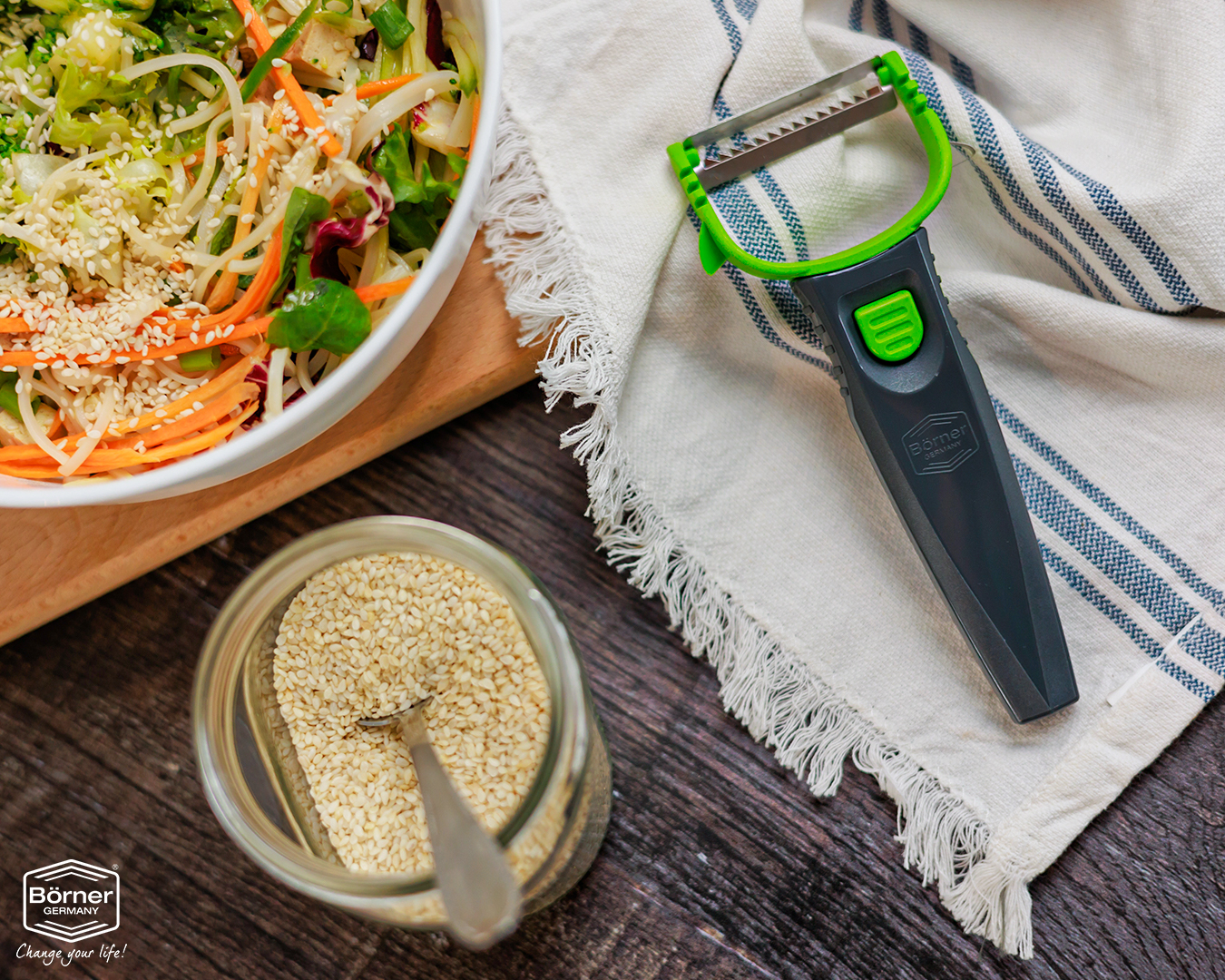 Nos produits Börner sont connus pour leur longévité et vous inspireront pendant des décennies. Nos coupe-légumes ainsi que nos râpes et autres ustensiles de cuisine devraient susciter la joie pendant longtemps dans votre cuisine, c’est pourquoi nous nous sommes donné pour mission de ne vendre que la meilleure qualité pour permettre une vie saine et active. Convainquez-vous !