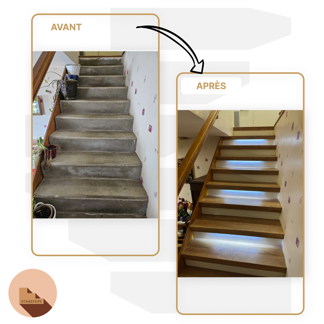 Inutile de le détruire, nous rénovons votre escalier à moindre coût tout en gardant l’escalier existant. STARSTEPS vous accompagne tout au long de votre projet de rénovation d’escalier, de façon totalement sur-mesure, personnalisée à votre demande.
